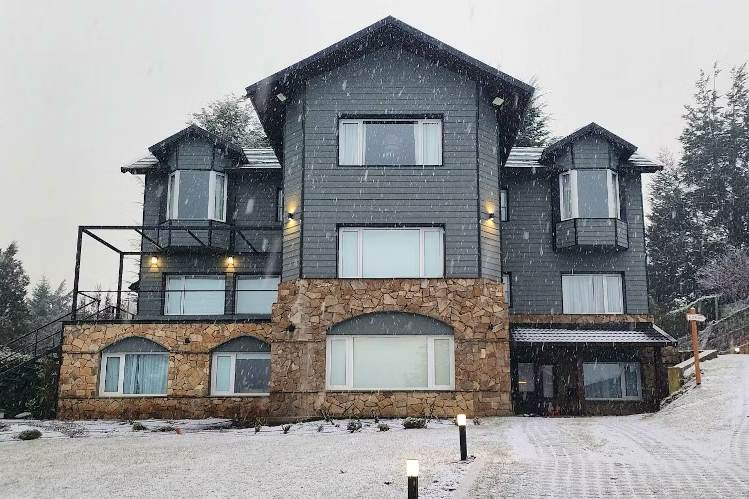 Hostería Boutique a metros del lago, situada en una esquina emblemática en Puerto Manzano. Descanso, cálida atención y excelente gastronomía